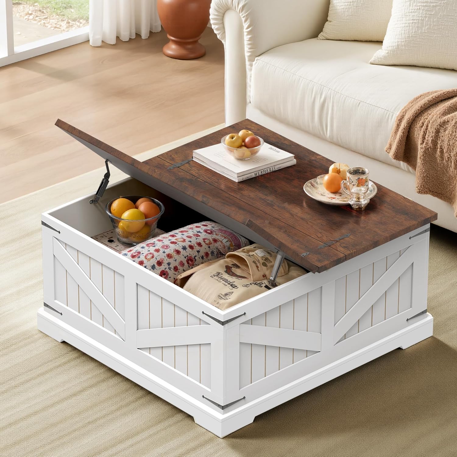 Farmhouse Coffee Table with Storage,...
