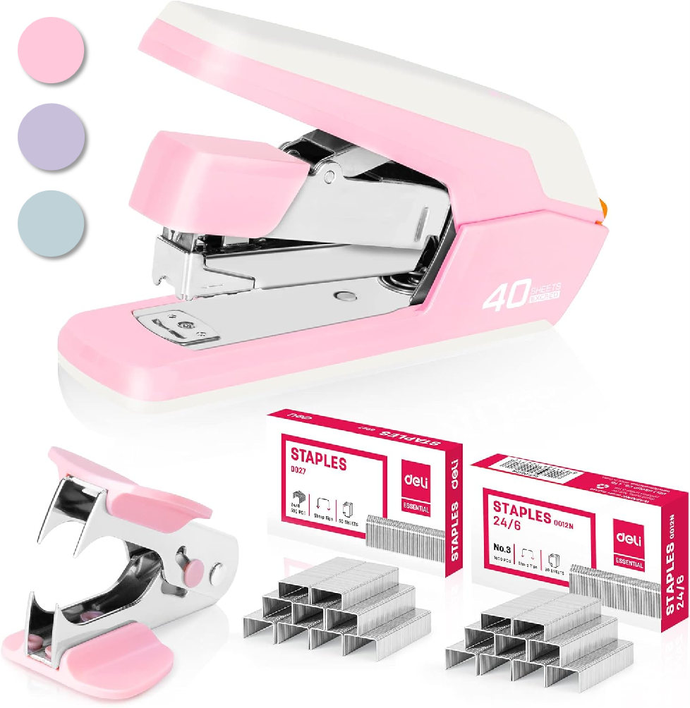 Deli Effortless Desktop Stapler, Heavy Duty Stapler, 40-50 Sheet Capacity, One Finger, No Effort, includes Staples & Staple Remover